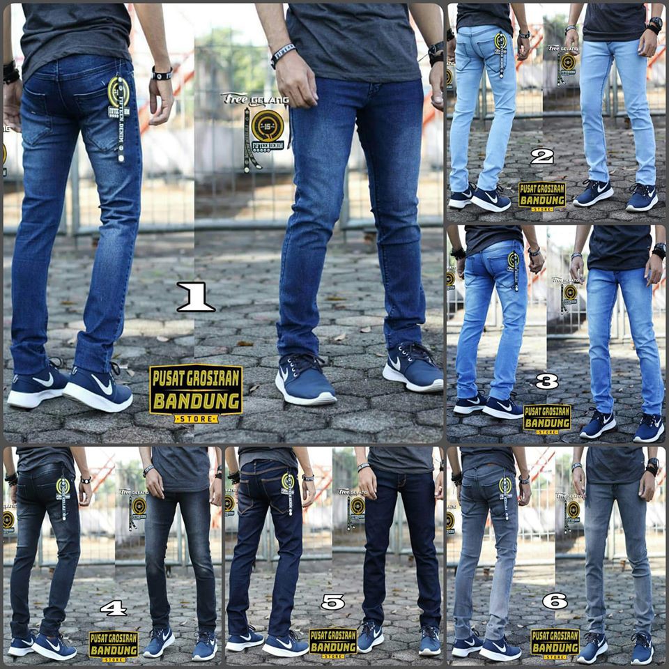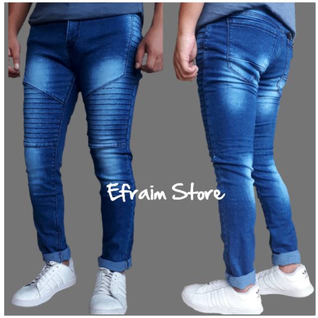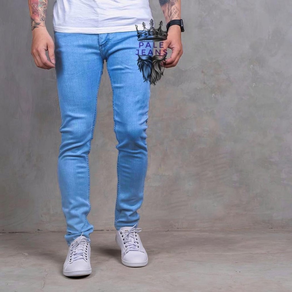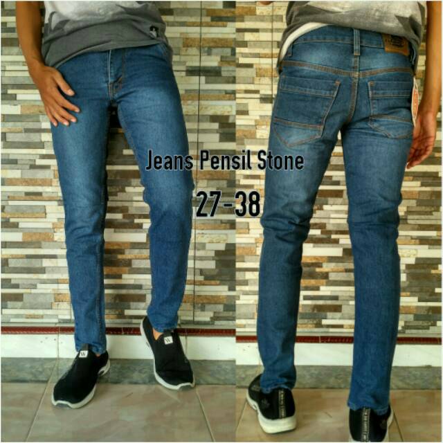 Celana Jeans Pensil Pria Warna Biru