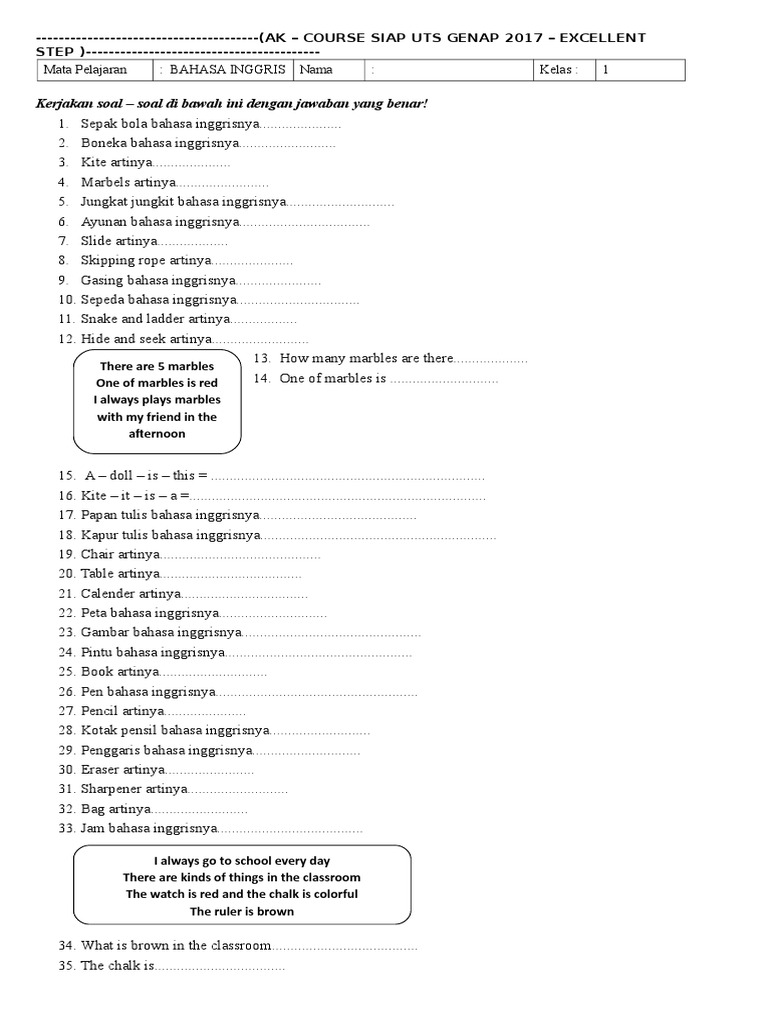Kotak Pensil Bahasa Inggrisnya
