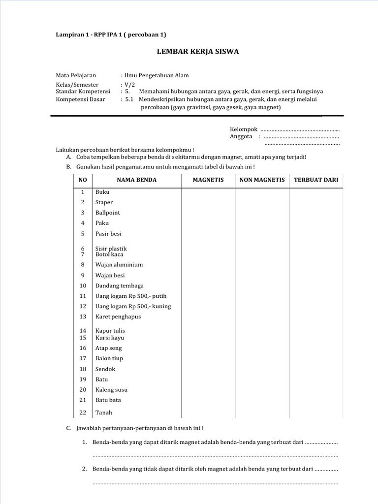 Pensil termasuk benda a nonmagnetis b magnetis magnetis dan nonmagnetis. Bahan dari plastik dan kayu tidak dapat ditarik magnet. Pensil karet gelang sisir kerikil kayu dan kertas dan beling termasuk benda nonmagnetis sebab tidak bisa ditarik oleh magnet sedangkan peniti paku penjepit kertas dan gunting termasuk benda magnetis alasannya adalah mampu ditarik oleh magnet. Peniti paku penjepit kertas dan gunting dapat ditarik oleh magnet.