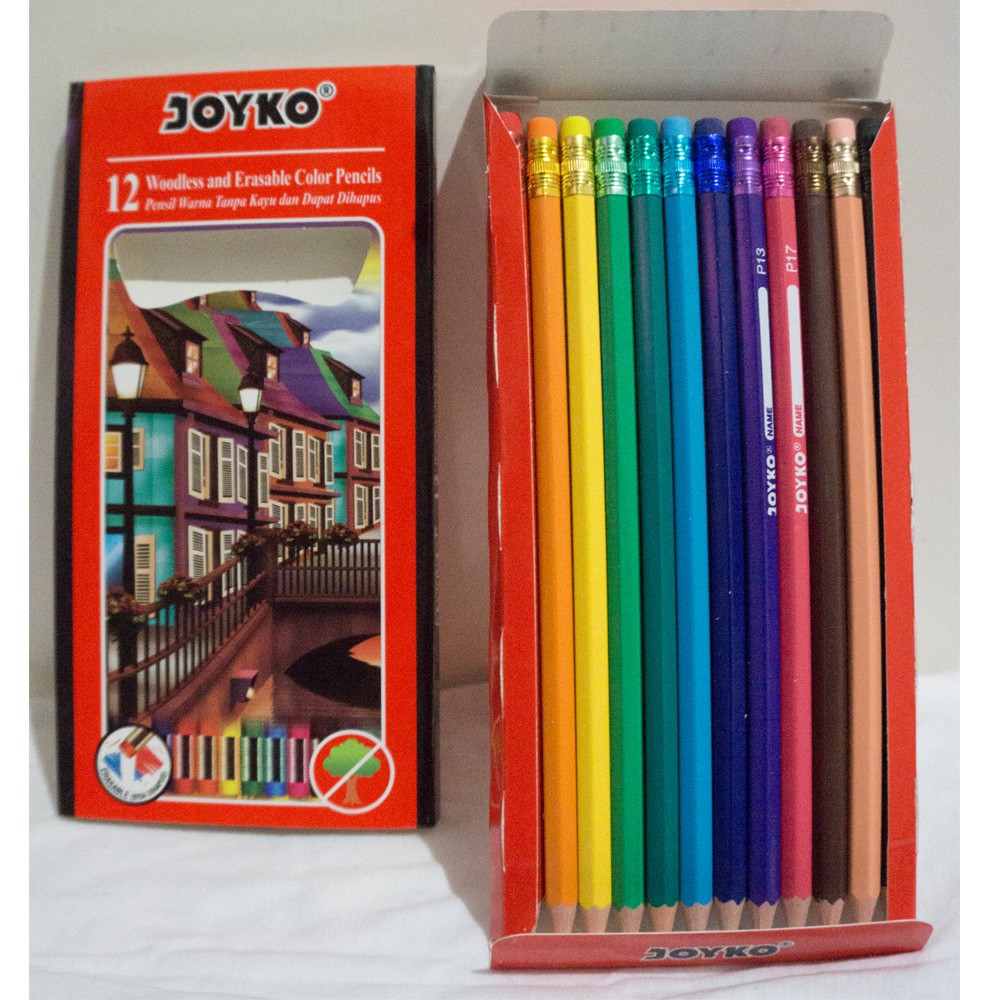 Jual erasable color pencils pensil warna dapat dihapus joyko cp 120 12warna dengan harga rp9 500 dari toko online joyko official jakarta utara. Jual pensil warna 24 warna dapat dihapus joyko cp 115 dengan harga rp23 870 dari toko online yang stationery kota serang. Joyko wcp 110 watercolor pencils free kuas 24 colors rp 32 900.