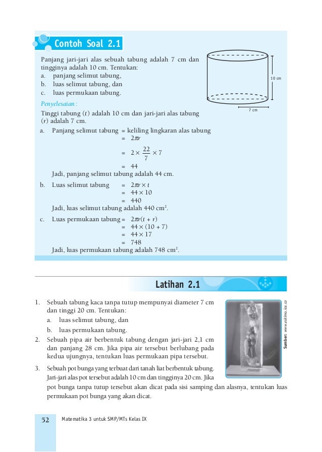 Sebatang pensil berbentuk tabung dengan panjang 17 cm. Luas selimut tabung cm. Sebuah kaleng susu berbentuk tabung memiliki panjang diameter 14 dm dan tinggi 20 cm. Dalam matematika terdapat beberapa bangun ruang salah satunya adalah tabung tabung merupakan bangun ruang yang dibatasi oleh dua sisi yang kongruen dan sejajar yang berbentuk lingkaran serta sebuah sisi lengkung.